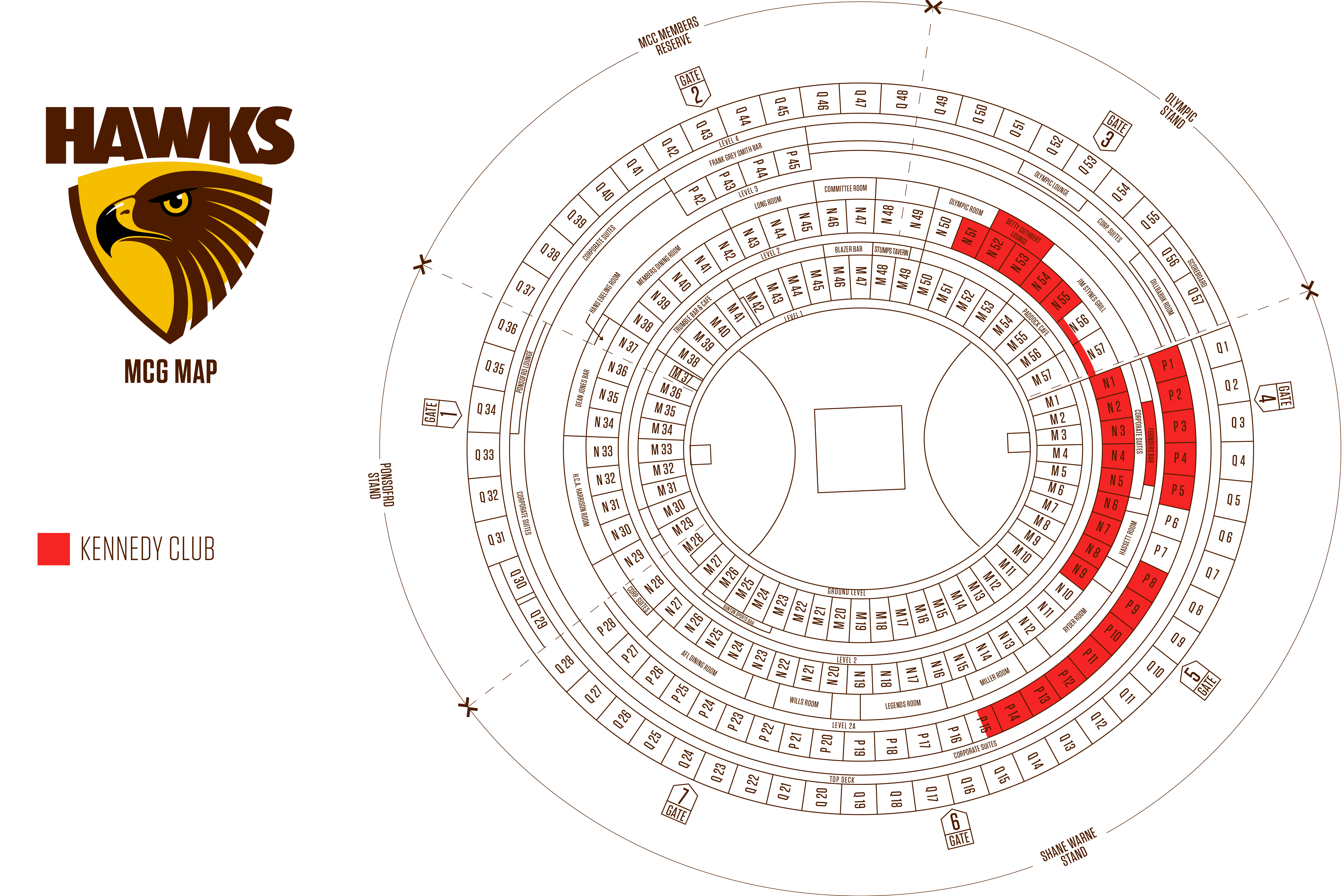 Reserved seating in Hawthorn's Kennedy Club seating allocation for seven home games in Melbourne*